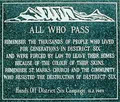 They believe that the evil white government destroyed a happy go lucky community and forced them onto the Cape Flats, mainly where Mitchels Plain is today. To tell the truth about District Six today will be a revolutionary act.